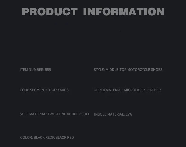 Suitability: Motocross boots, motorcycle ankle boots, motorcycle riding boots